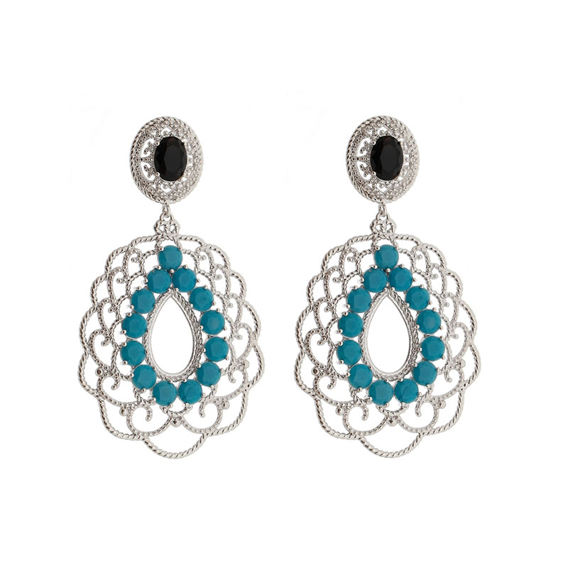 Par de brincos em zircônia e pedras naturais banhado a ródio branco.(Antialérgicos)