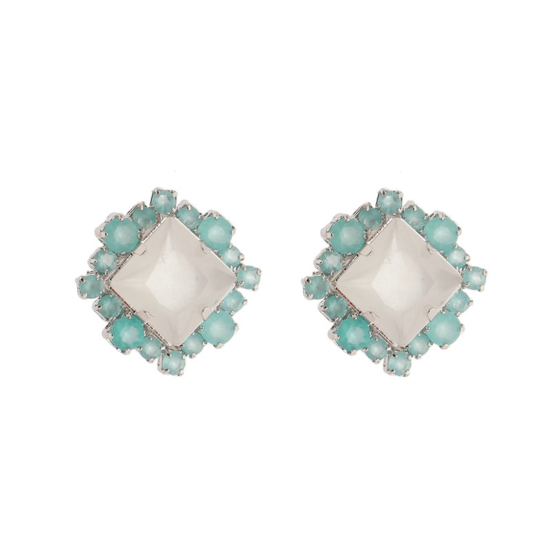 Par de brincos em zircônia e pedras naturais banhado a ródio branco.(Antialérgicos)